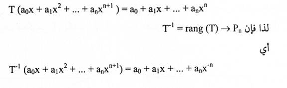 واضح أن T متباينة وعليه فإن T لها معكوس. كذلك: