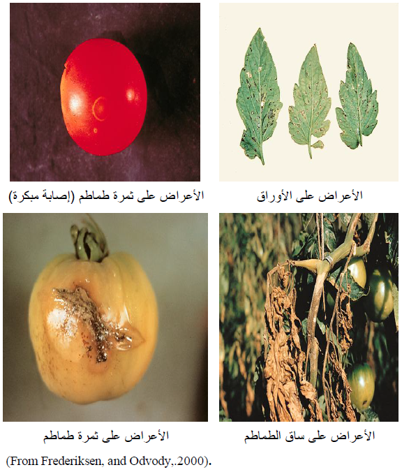 شكل رقم (1) أعراض الإصابة على الطماطم