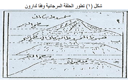 وضع داروِن أساس هذه النظرية سنة ١٨٣٢ وتم تعديلها سنة ١٨٤٢ بعد أن تأكد خلال رحلاته البحرية من أن المرجان ينمو فقط في المياه الضحلة. وترى هذه النظرية أن المرجان ينمو إلى أعلى حتى يصل إلى مستوى سطح الماء عند الجزر، ومع هبوط السواحل المرجانية وارتفاع منسوب الماء يصبح المرجان في أعماق بعيدة ويتمشى نموه الرأسي والأفقي تبعا لمعدلات الهبوط، مع زيادة معدلات سرعة النمو عن الحافة الخارجية، وطبقا لهذه النظرية فإن الحاجز المرجاني عبارة عن بقايا لخط ساحل قديم هبط تكتونيا، وأن الحلقات المرجانية في معظمها عبارة عن أطر مرجانية تطوق جزرا قد هبطت لتتوسطها بحيرة وتتحول في النهاية إلى حلقة مرجانية. وأن الشعاب المرجانية التي نراها هي تلك التي استطاعت أن تحافظ على نموها الرأسي مع الهبوط. أما الشعاب التي هبطت بمعدل أسرع من معدل النمو المرجاني فتظهر مغمورة عند أعماق قد تصل إلى ٩٠٠ متر، وتوضح الصورة رقم (1) سطح إطار مرجاني ممتد أمام ساحل جزر فرسان البحر الأحمر لاحظ عدم انتظام سطح الإطار. ومما يؤخذ على هذه النظرية أنها لم توضح ما إذا كان الغمر قد حدث فجأة أم بشكل تدريجي وهل تم بصورة مستمرة أم على مراحل. وعموما، فإن هذه النظرية مع بساطتها قد جذبت اهتمام الكثيرين مثل ديفيز وغيره من الباحثين ( شكل 1).