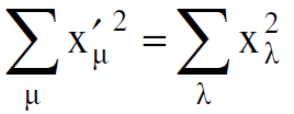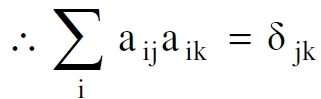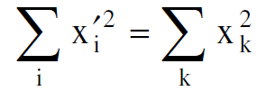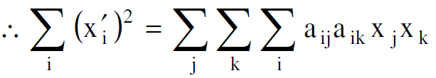 وهذا التحويل يسمى بالتحويل الخطي وان aij تمثل مجموعة من المعاملات التي توصف هذا التحويل. ويصبح هذا التحويل تعامديا اذا بقي مقدار المتجه x2i Σ دون تغيير. فاذا فرض ان المعادلة الاخيرة تمثل تحويلا تعامديا يكون :