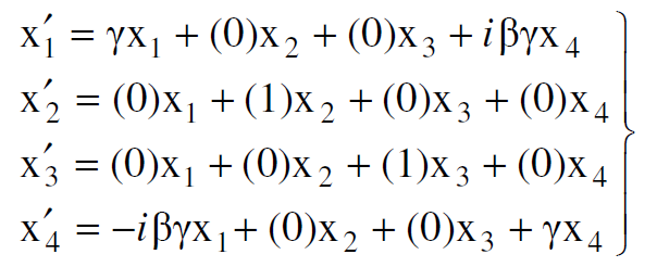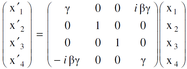 ويمكن التعبير عن تحويلات لورنس بصيغة المصفوفة بشكل :