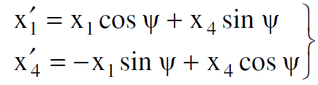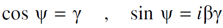 ان تحويل لورنس الممثل بالمعادلة (1.7) يمكن ان يفسر كدوران في المستوى x1x4. وفي هذه الحالة فان زاوية الدوران Ψ يمكن تحديدها من معادلتي التحويل الاتيتين :
