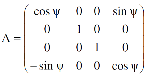 و aij هي مصفوفة الدوران الخاصة بهذا التحويل. ان طريقة التحويل باستخدام المصفوفات يمكن تطبيقها بالنسبة للقضاء ذي الابعاد الاربعة.