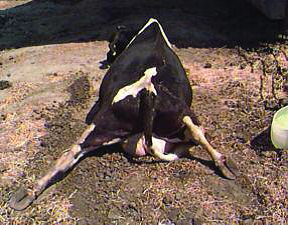 وهذا يمكن ان يحدث للأبقار التي لم يسمح لها بالرياضة الكافية أثناء الحمل، او من كثرة حركة الجنين داخل الرحم.