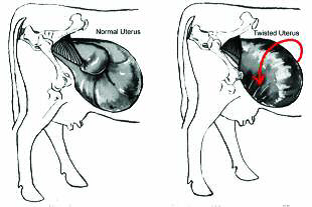 وهذا يمكن ان يحدث عندما تكون هناك زيادة في السمنة وسببه التغذية الزائدة قبل الحمل، او إمكانية تليف الجروح التي اصيب بها الجهاز التناسلي في الحيوانات التي ولدت سابقا.