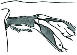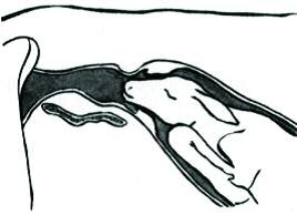 شكل (6) عسر ولادة – قائمتان اماميتان اسفل المولود في قناة الولادة