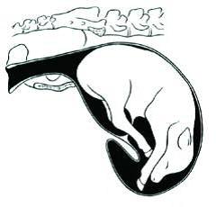 شكل (7) عسر ولادة – الرأس عكس فتحة الخروج والقوائم الأربعة محصورة اسفل جسم المولود