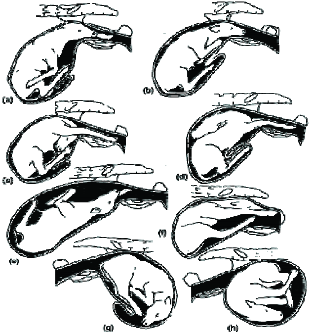 شكل (3) عسر ولادة – المولود يكون مقلوبا على ظهره