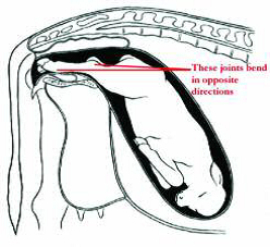 - خروج امامي مع انثناء القوائم الامامية للخلف عند الركبتين.