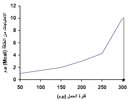 شكل (3) تطور احتياجات الابقار من الطاقة مع تقدم مراحل الحمل