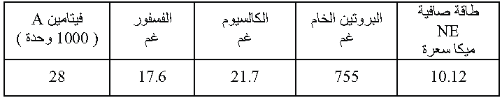 جدول(1) احتياجات الادامة لبقرة وزنها 633 كغم