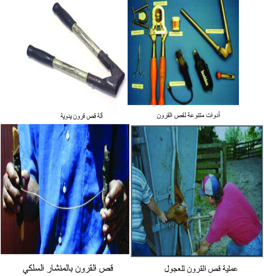 أحيانا تترك الحيوانات دون إزالة قرونها بعمر مبكر، لذلك تستطيل في بعض الأبقار اكثر من اللازم فيتم ازالتها باستخدام المنشار او مقص القرون Horn clipper او باستخدام سلك معدني خاص لهذا الغرض، يجب الاحتراس من التقرب من منبث القرن خوف من حدوث نزف دموي. كما ويفضل ان تجري في وقت اعتدال الجو لضمان شفاءها بسرعة وعدم حدوث آية مضاعفات.
