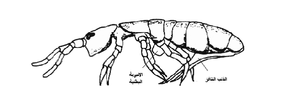 ٣) الذنب القافز "Furcula" على العقلة الرابعة، وهو عبارة عن قضيب مشقوق عند مؤخرته تستخدمه الحشرة في القفز.