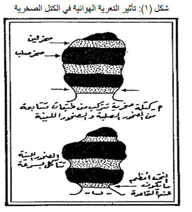 حينما تكون الرياح نقية خالية من الرمال والغبار يصبح تأثيرها كعامل تعرية محدوداً جداً أو معدوماً بلغت قوتها. ومن ثم لابد لها من فتات صخري تنقله ويكون لها بمثابة معاول هدم، تؤشر بها في الصخور. وتهيئ لها عوامل التجوية (فعل تتابع الحرارة والبرودة) ذلك الفتات الصخري. ويشتد تأثير الرياح في الأجزاء السفلى من الكتل الصخرية البارزة، نظراً لأن الرياح لا تقوى على رفع الفتات الصخري الى علو كبير (انظر شكل 1). وتشاهد هذه الظاهرة في الصحارى المصرية، فنجد الأجزاء السفلى من أعمدة التلغراف وقد تأكلت وصقلت بفعل الرياح دون أجزائها العليا, ويتوقف تأثير الرياح كعامل نحت على سرعتها وقوتها وبالتالي على مقدار ما تحمله من رمال، ثم على طبيعة الصخر الذي تؤثر فيه إن كان ليناً هشاً أو صلباً مندمجاً.
