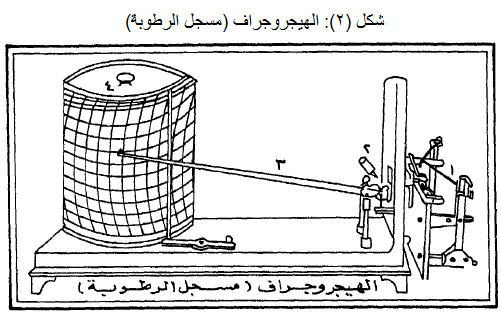 ويتركب جهاز الهيجروجراف الذي يسجل الرطوبة النسبية في الجو تلقائياً من: شكل (2).