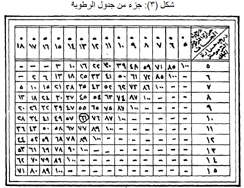 3- نرجع الى جداول خاصة (شكل 128) فنجد أن الرقم المقابل لهاتين الدرجتين هو 66 وهو النسبة المئوية للرطوبة في الهواء.