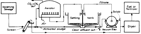 التخلص الفعال من مياه المجاري مهم للصحة في أي تجمع . وكانت أسهك طريقة للتخلص منها في الماضي هي التمديد ، حيث كانت النفاية تطرح في جرم متيسر من الماء كنهر أو بحيرة ، فيعمل الأكسجين الموجود مع مرور الوقت على تخريب المواد العضوية المتواجدة في مياه المجاري . ولكن لا يمكن التسامح بهذا التخفيف لفترة طويلة حتى في الأمكنة التي يكون فيها مرضيا . وببساطة لا يوجد هناك ماء كاف يمكن استخدامه لتخفيف الكميات الكبيرة من النفايات المتزايدة الناتجة عن زيادة السكان والصناعات . وسرعان ما تحدد ضوابط التلوث الناجم عن تفريغ النفايات في البحر أو نقل مواد المجاري الصلبة إليه ، والتي يزداد تركيزها في وحدات معالجة مياه المجاري .
