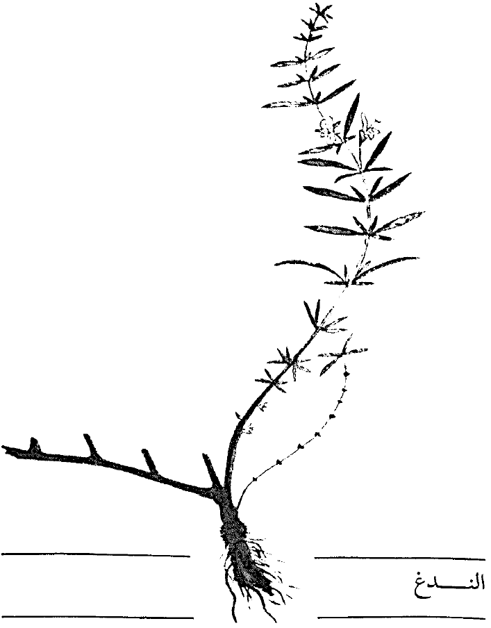 نبات صغير معمر, يتراوح ارتفاع الساق بين 12- 40 سم أوراقه ضيقة ضيقه بيضوية متطاولة حادة في قمتها, وهي قاسية ولامعة. ازهارها وردية او بيضاء متوضعة على شكل شبه دائري, متقاربة, ويشكل مجموعها عنقودا في نهاية الساق. ثمارها رباعية الحجيرات وبذورها بيضوية الشكل.