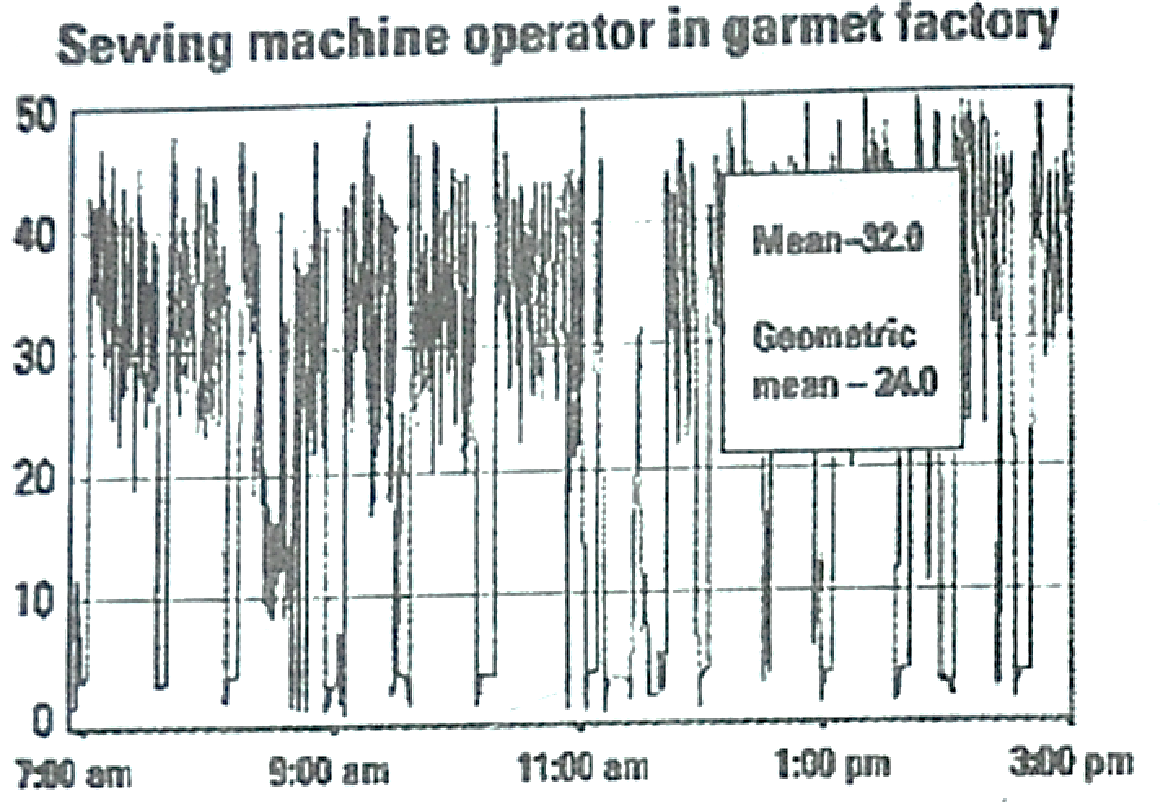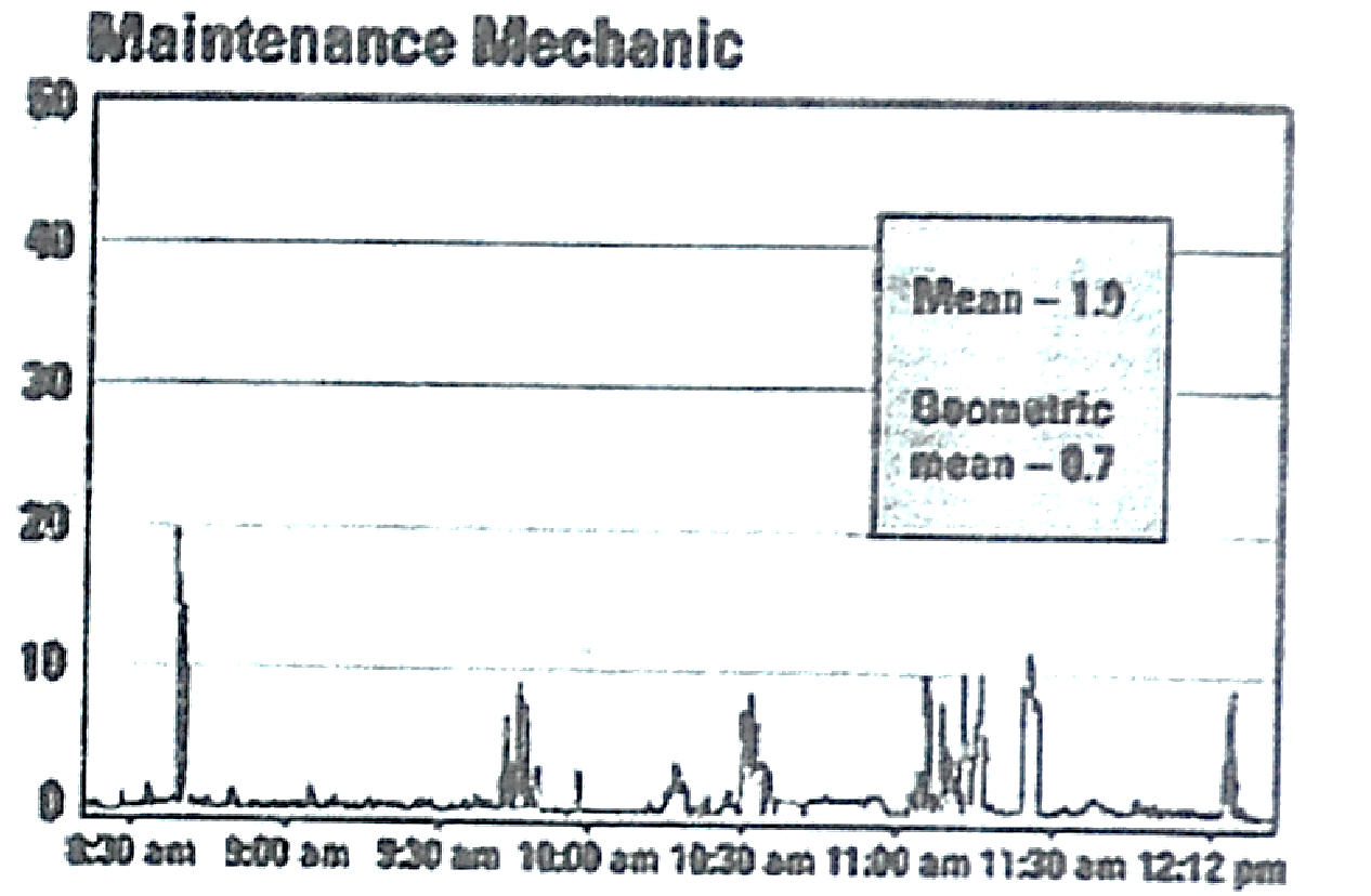 والاشكال التالية توضح قيم المجال التي يتعرض لها العامل اثناء وقت العمل مقاسة بالملي جاوس. ومن اهم مصادر المجالات الكهرومغناطيسية في المدارس خطوط الكهرباء القريبة منها ولتوصيلات الكهربائية الداخلية الغير سليمة وأجهزة الحاسب الالي ومحطات الارسال التلفزيوني والراديو والتليفون المحمول القريبة من تلك المدارس. اما خارج كل من المنازل وأماكن العمل فالسير بالقرب من او أسفل خطوط الجهد العالي واستخدام وسائل المواصلات الكهربائية يسبب التعرض لمجالات كهرومغناطيسية قوية.