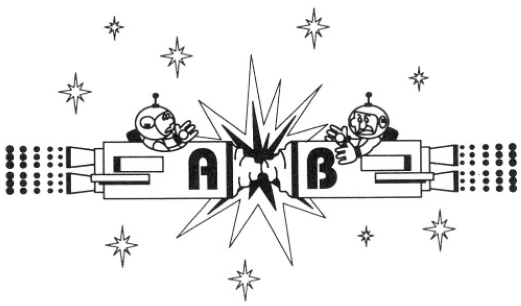 A person on Earth observes two rocket ships moving directly toward each other and colliding as shown in Figure 1.1a. At time t = 0 in the Earth