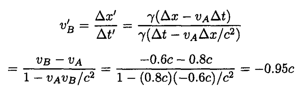 The same result (with opposite sign) may be obtained in B’s frame for rocket A.