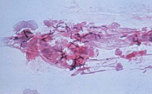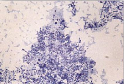 صيغة جرام لإفرازات الجروح تظهر وجود مستعمرات النوع البكتيري C. diphtheriae