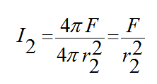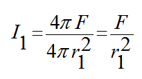 اذا فرضنا وجود مصدر ضوئي عند مركز كرتين، نصفي قطرهما r1, r2 فان شدة الاستضاءة على سطح الكرة الأول
