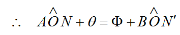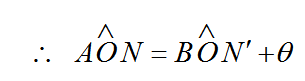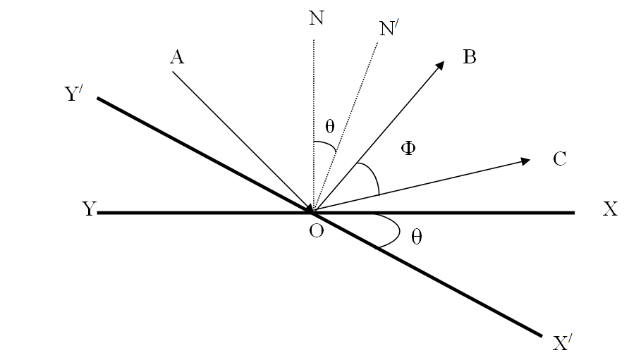 إذا افترضنا الشكل ((1 مع افتراض دوران السطح العاكس XY بزاوية θ لكى يأخذ الوضع X/ Y/ كما موضح بالشكل ((2، و أن اتجاه الشعاع المنعكس عند هذا الوضع هو OC، و ليكنON/ هو العمود على X/ Y/ و Φ هي زاوية الانحراف بين الشعاع المنعكس على السطح الأول و الشعاع المنعكس على السطح الثاني.