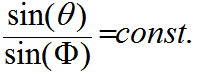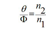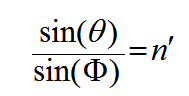 و عندما تكون زوايا السقوط و الانكسار صغيرة جدا، فانه يمكننا وضع جيوب الزوايا مساوية للزوايا ذاتها أي أن: