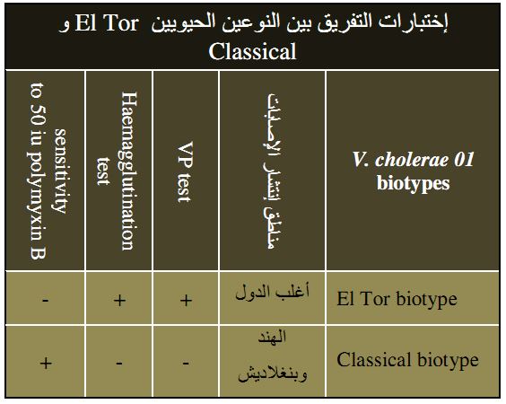 ــ El Tor وهو المسئول على أغلب إصابات الكوليرا الناتجه من النوع البكتيري V. cholerae O1