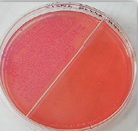 ــ الوسط الغذائي MacConkey : المستعمرات النامية تكون شفافة وصغيرة جداً وبلون وردي وذلك بعد تحضينها لمدة 48-24 ساعة وهي غير قادرة على تخمير سكر اللاكتوز إلا أنها تظهر كأنها قادرة على تخمير هذا السكر وذلك نظراً لقدرتها على الاستفادة من الصبغة الحمراء التي تستعمل ككاشف في هذا الوسط الغذائي.