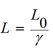 و حيث أن γ أكبر من الواحد فان الطول الظاهري (L) يكون أقل من الطول الحقيقي (L0) و هذا ما يسمى انكماش الطول.