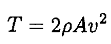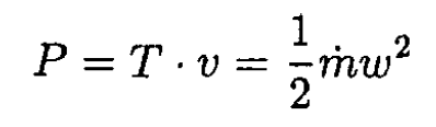 The thrust T is equal to the momentum change per unit time of the air from velocity 0 to ω: