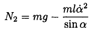 Since N1 is the only force acting in the x direction, N1 = mẍc When the ladder loses contact with the wall, N1 = 0. Differentiating (4) twice gives