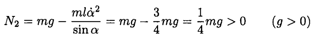We have assumed that the ladder loses contact with the wall first. Let us check this assumption. It implies that N2 > 0 at all times before the ladder leaves the wall