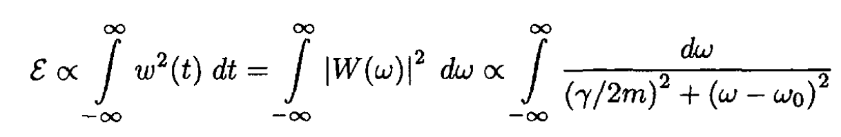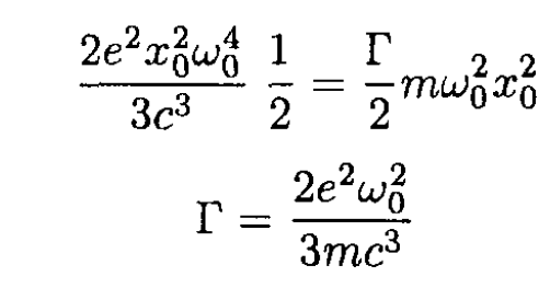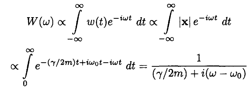 Consider the classical theory of the width of an atomic spectral line. The “atom” consists of an electron of mass m and charge in a harmonic oscillator potential. There is also a frictional damping force, so the equation of motion for the electron is