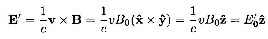 In the lab frame K, we have E = 0 and B = B0ŷ. Using (1) for the frame K', we have an electric field in this frame