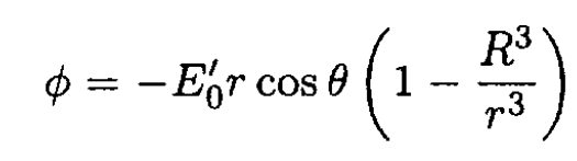 where E'0 = vB0/c. Now, we have a perfectly conducting sphere in a constant electric field, so we may write the potential outside the sphere in the form