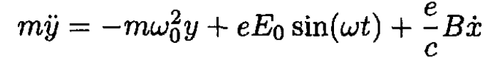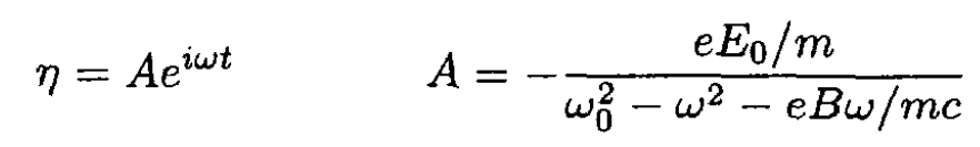 a) An electron (mass m, charge -e ) is subject to the elastic force F = -m ω20r. A static, uniform magnetic field B in the positive z direction is also present. The electron is set in forced motion by one of the circularly polarized electromagnetic waves