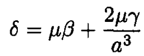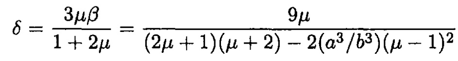 where (1), (2), and (3) are written for areas 1, 2, and 3 outside the shell, at b > r > a, and inside the shell, respectively (see Figure 1.1); α, β, γ, and δ are numerical factors that we shall find from