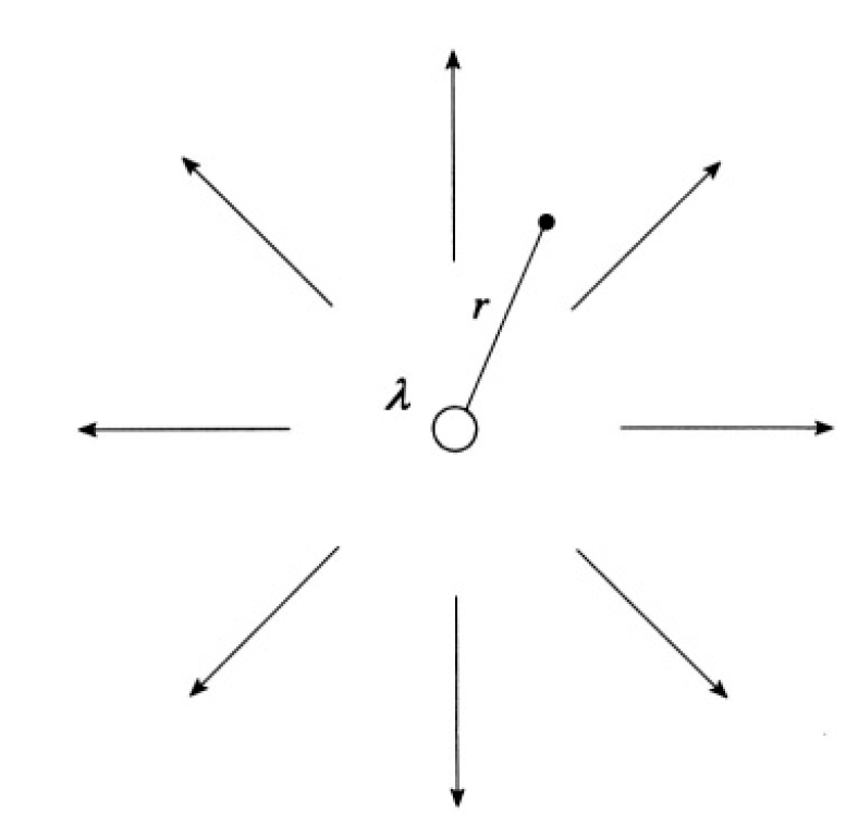 c) The electric field of an infinitely long charged wire passing through the origin is given by