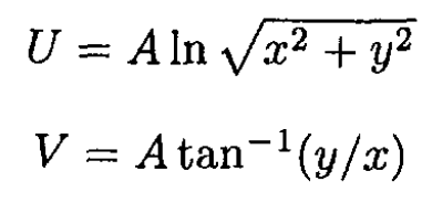 where A = -2λ and λ is the charge per unit length, r is the distance from the wire (see Figure 1.1). The complex potential