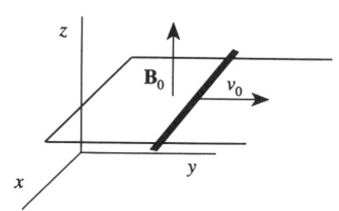 A copper rod slides on frictionless rails in the presence of a constant magnetic field B = B0ẑ. At t = 0, the rod is moving in the y direction with velocity (see Figure 1.1).