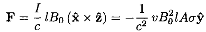 where R is the resistance of the rod, A is its cross section, and σ is the conductivity of the rod. The force acting on the rod is