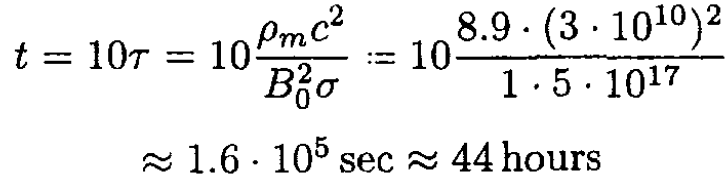 b) For copper, σ = 5 × 1017s-1 and ρm = 8.9 g/cm3. If B0 = 1 gauss, estimate the time it takes the rod to stop.