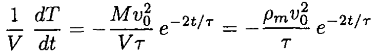 c) The kinetic energy of the rod is T = Mv2/2 = (Mv20/2)e-2t/τ, where M is the total mass of the rod. We can simply take the derivative of this kinetic energy per unit volume: