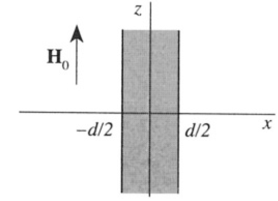 A very long, thin plate of thickness d is placed in a uniform magnetic field H0 parallel to the surface of the plate (see Figure 1.1).