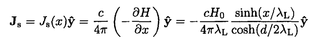 Because of the symmetry of the problem, H = H(x) ẑ where the H field inside the the superconductor will be in the z direction and depend only on x. So we have
