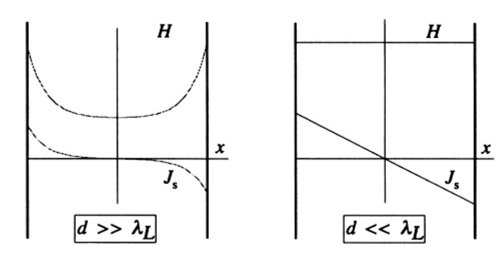 b) Consider two limiting cases d >> λL, d << λL, and draw a picture of the distributions in these two cases (λL– London penetration depth).