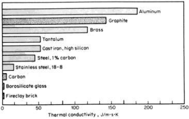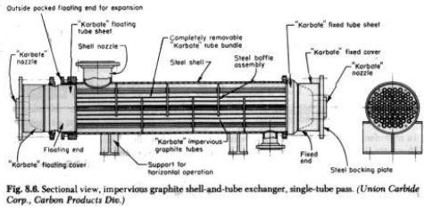 بما ان الكربون والغرافيت يجمعان بين المقاومة الكيميائية وبين عدد من الخواص الفيزيائية المرغوبة في المواد البنيانية للمصانع الكيميائية ، لذلك يعتبران من اوسع المواد اللامعدنية استخداماً في هذا المجال . فهما يقاومان الاجهاد الحراري بشكل جيد ، ويتميز الغرافيت بموصلية حرارية عالية (الصورة 1-1). هذا الجمع ، اضافة الى امكانية التشغيل الجيدة ، يجعل من الغرافيت ، والغرافيت الكتيم الخيار الافضل لكثير من اصناف المعدات الكيميائية .